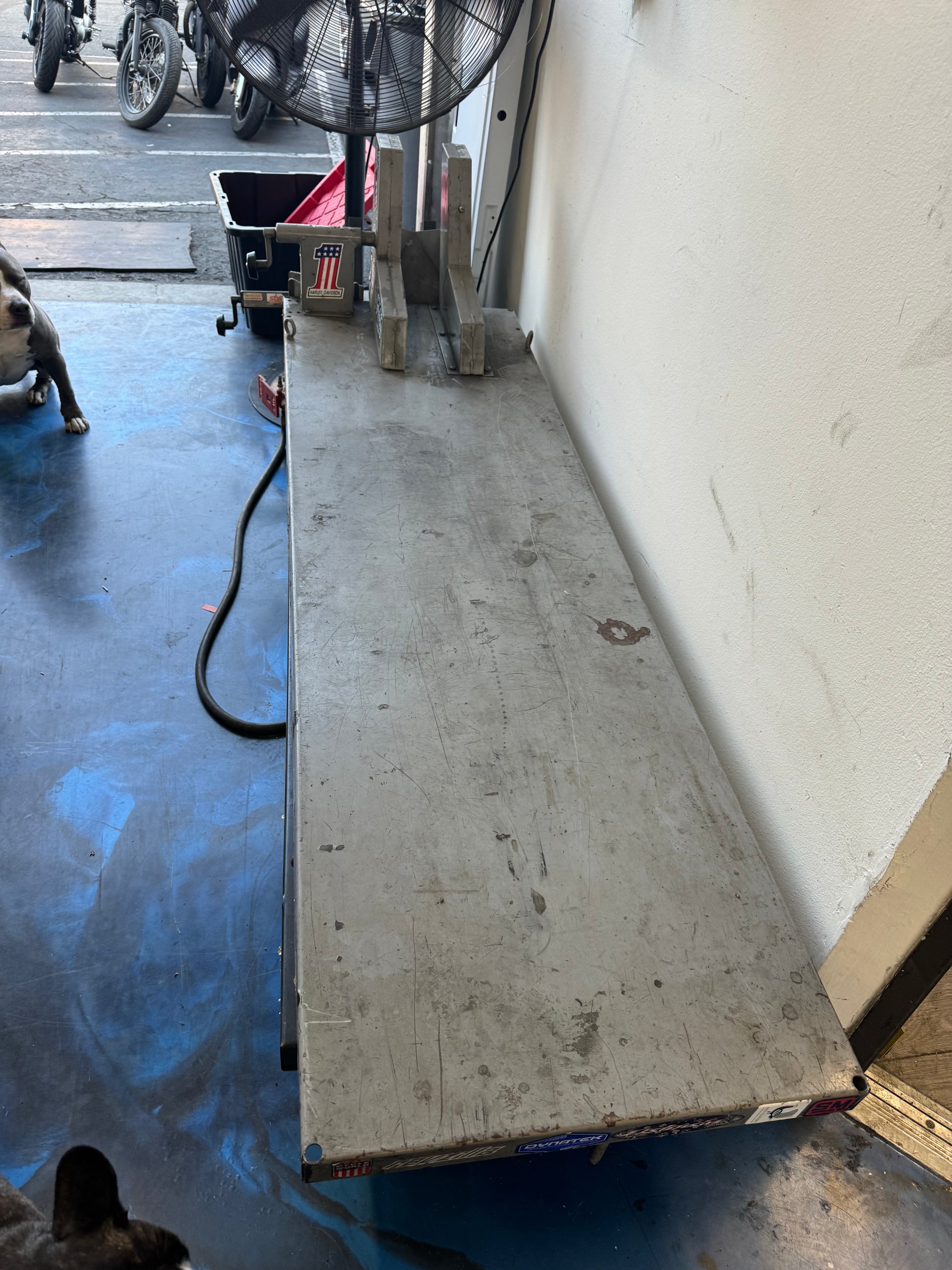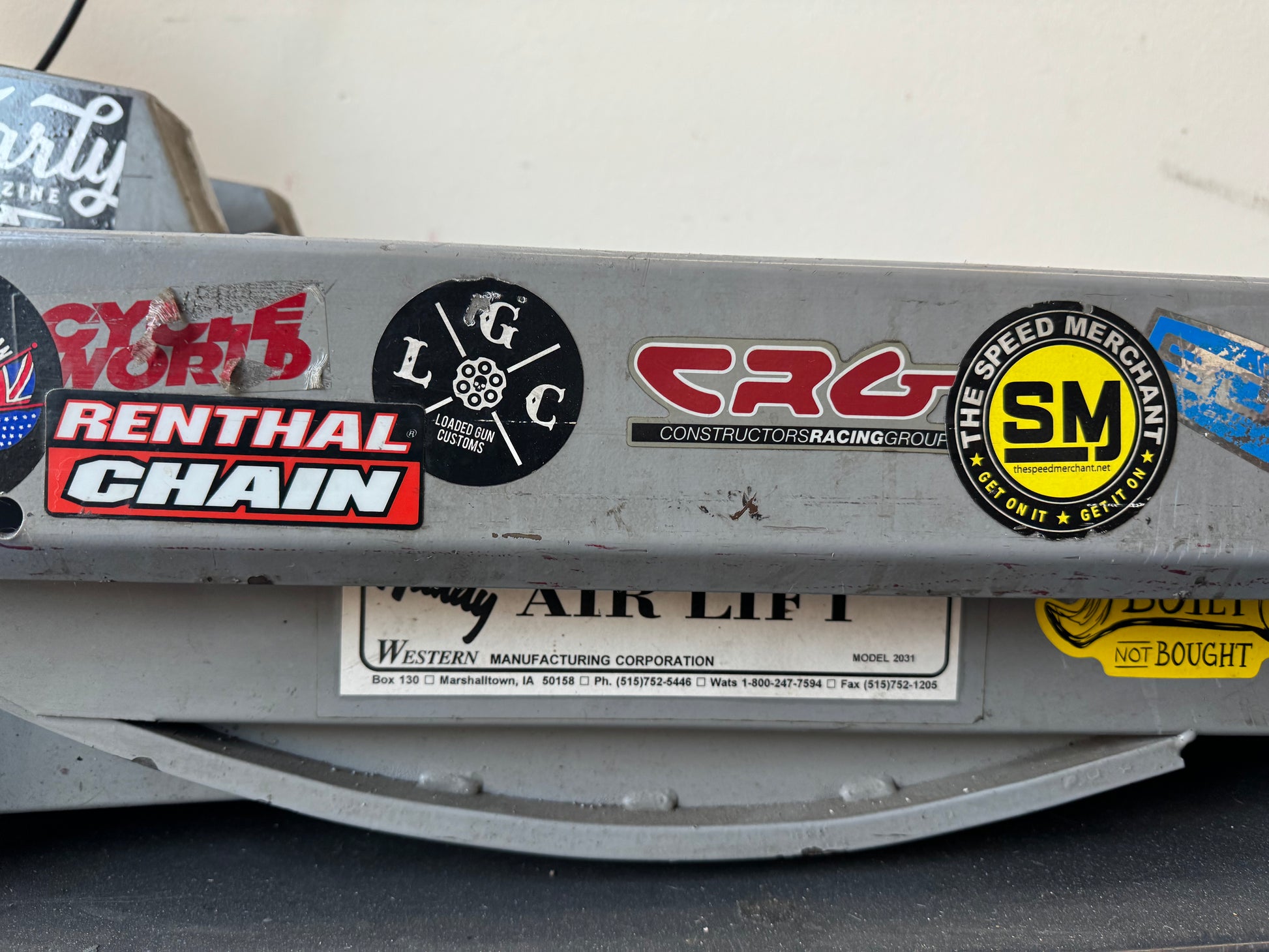 Works perfectly, no problems, just a little dirty. air operated, mounted foot pedal to lift, stickers can come off. Original ramp included, just not in the pics. Also, selling the one under it, take both and I will hook you up with a price.
