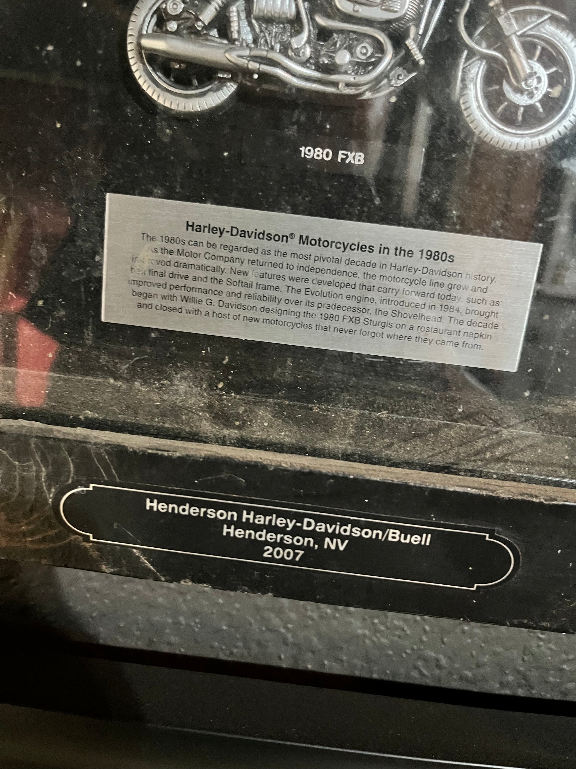 HARLEY DAVIDSON Motorcycles of 1990s Framed Shadow Box - Dealership Display from Henderson Nevada 2007.