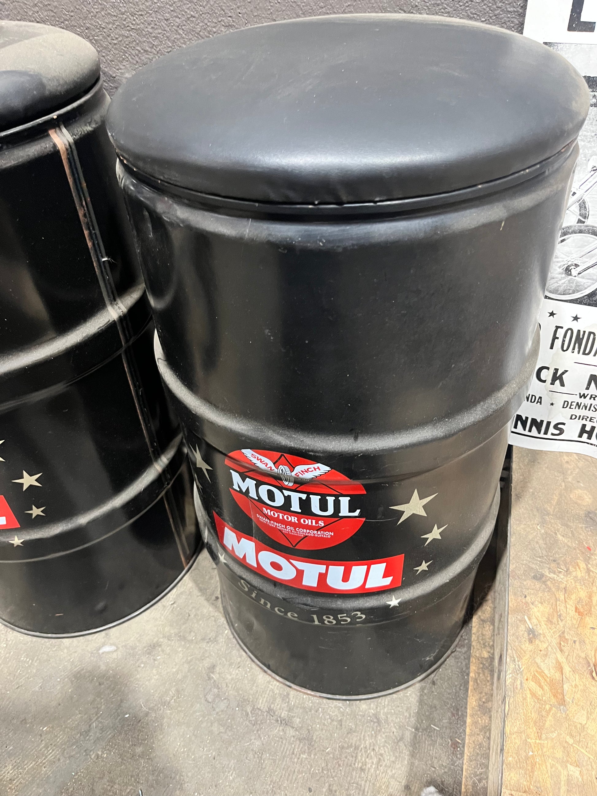 These only come direct from Motul, they are oil drums converted to shop/ bar stools.