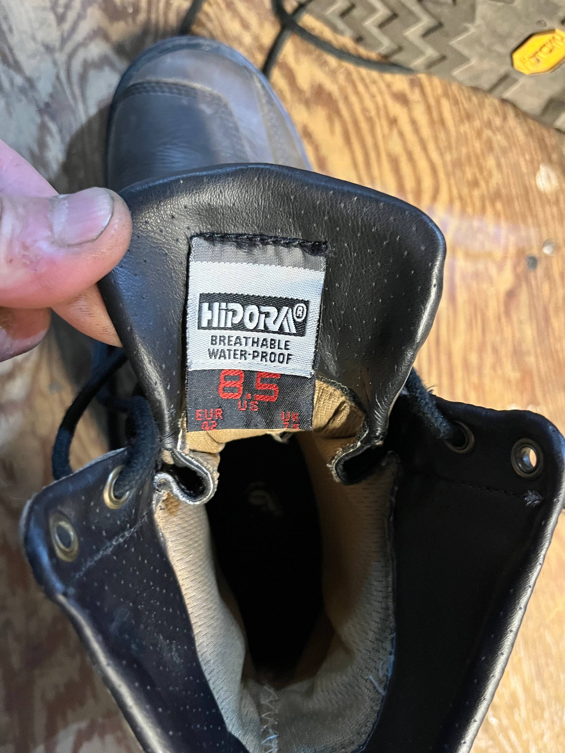 Worn a bit, no smell, size 8.5 Mens, grey color, just getting broken it! save some $$$. They do not make these anymore. Original retail was over $500.