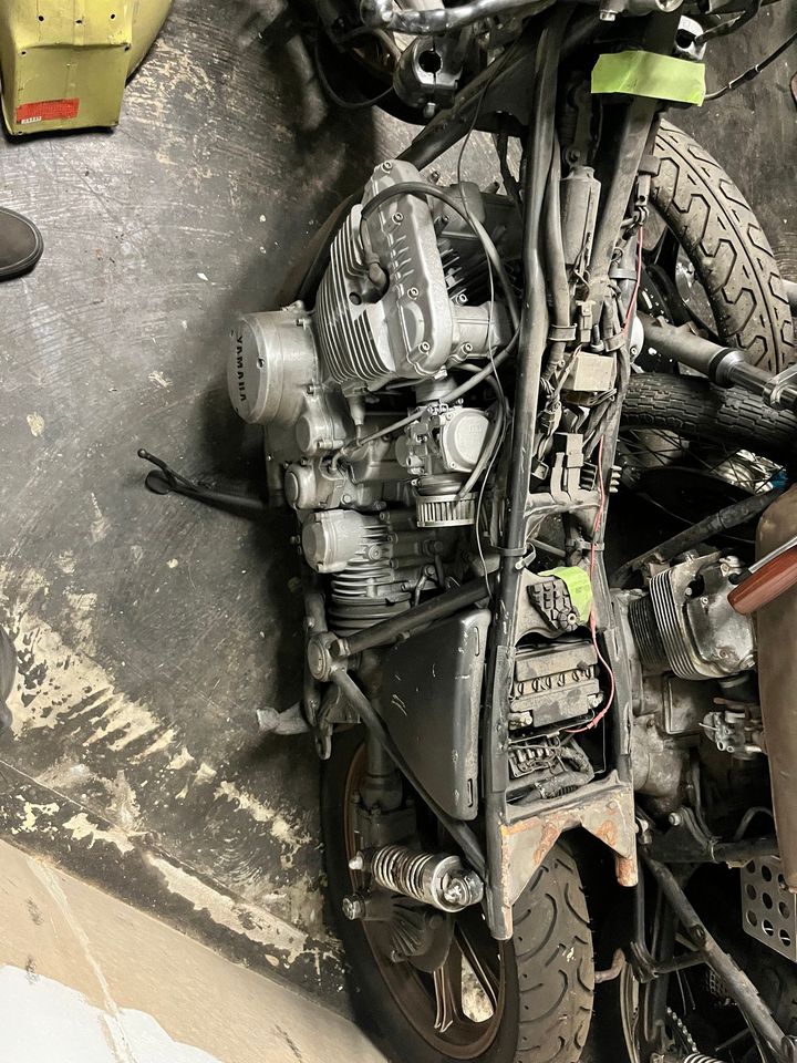 Not sure of model or year, what you see is what you get, not seat, no tank, ready for your custom parts, see pics! Motor is not locked up, looks like it has not ran in a while, someone painted everything, looks nice and clean, just dusty! Bill of sale only, out of the DMV system.